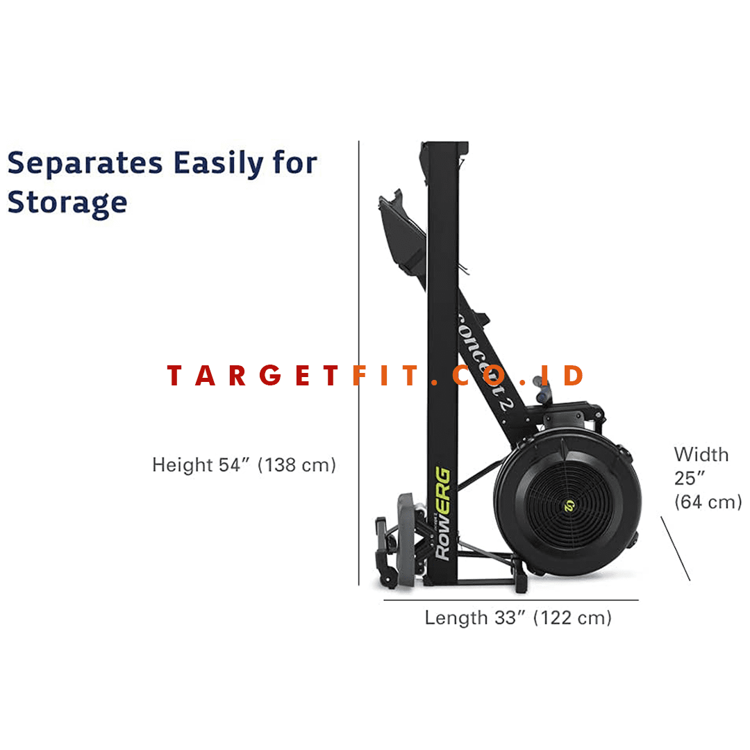 The RowErg is easy to wheel around for workouts and can be quickly separated into two pieces (no tools required) for compact storage. Ideal for homes or gyms that need flexible space. The taller legs of the elevated version feature large caster wheels for easier moving.
